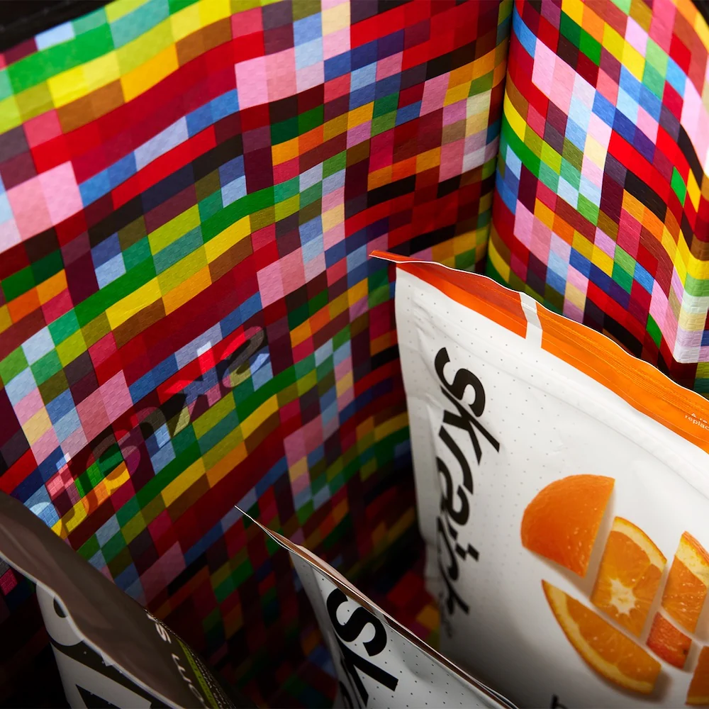 This bag isn't just any old boring tote - it's made from super sturdy, eco-friendly material that can hold even the heaviest loads of groceries, event gear and all your favorite munchies. Because let's be real, snacks are the #1 essential. You don't want to be caught without some emergency Skratch bars or chews when you're on the go.
