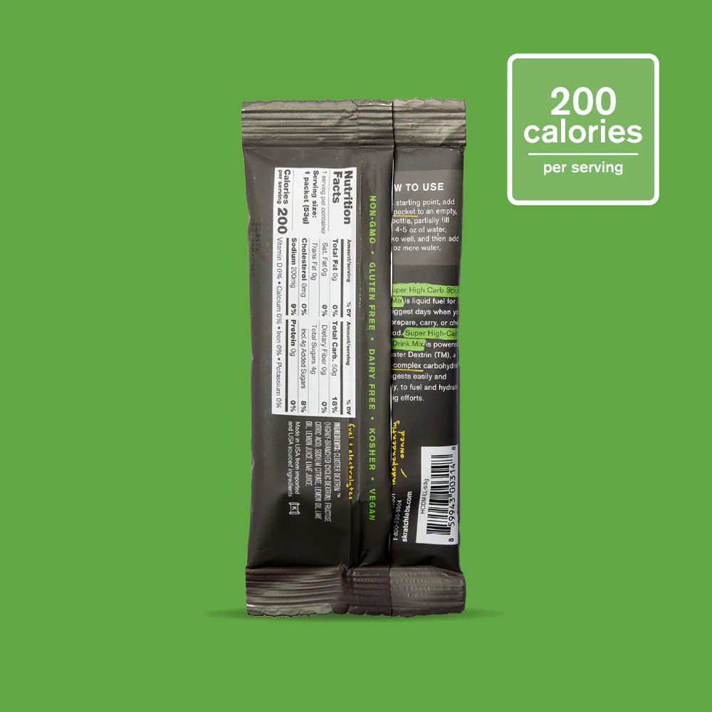 Super High-Carb Sport Drink Mix is designed to solve a prevalent problem for endurance athletes: fueling for big days of training or racing when preparing or carrying real food isn’t possible. Super High-Carb is powered by Cluster Dextrin™, a highly-complex carbohydrate that digests easily and steadily, like real food. One serving of Super High-Carb provides 100g of carbohydrates and 400 calories of energy.